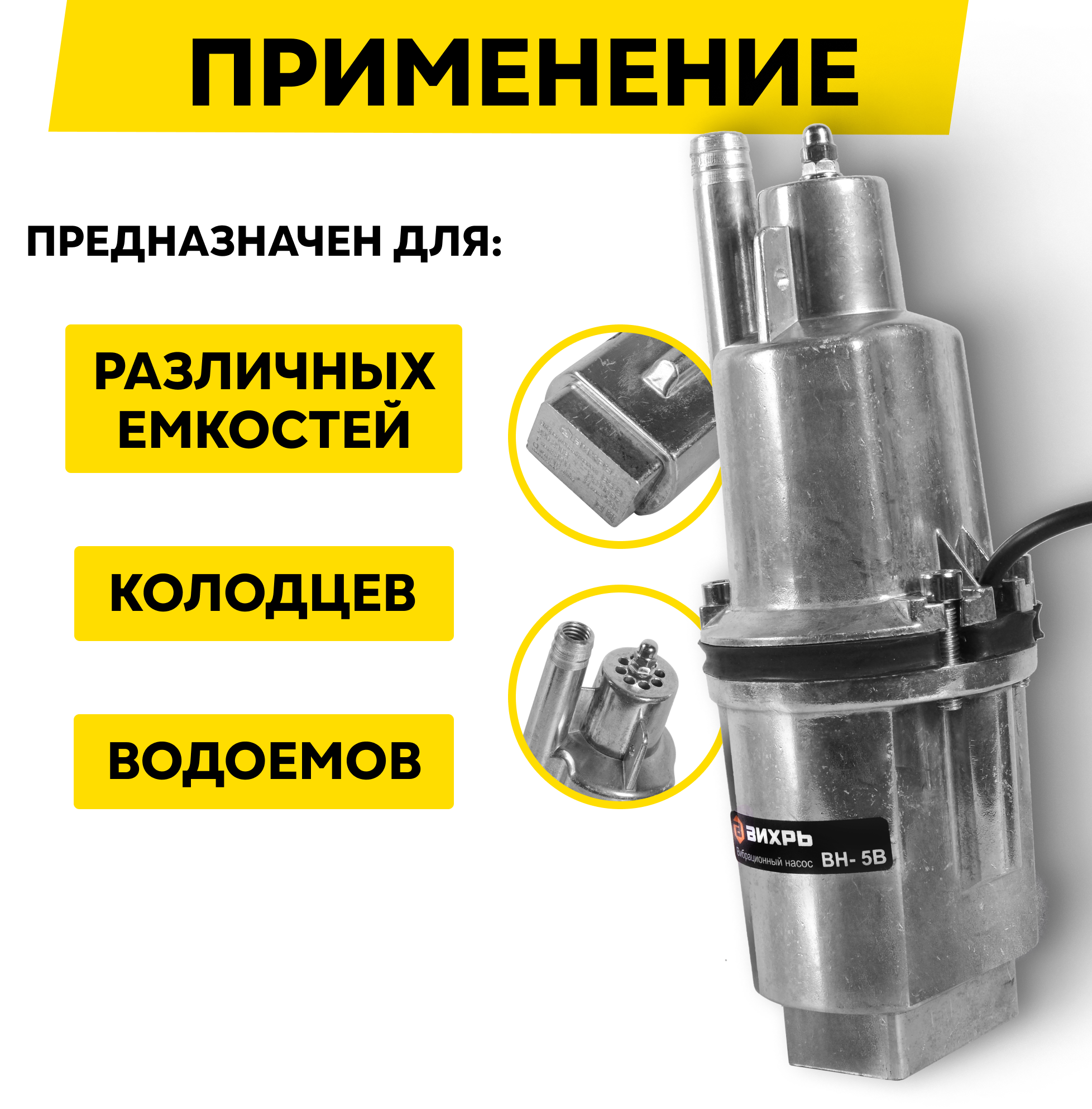 Вибрационный насос ВН-5В Вихрь, высота подъема 72м, верхний забор воды, кабель 5м интересное: