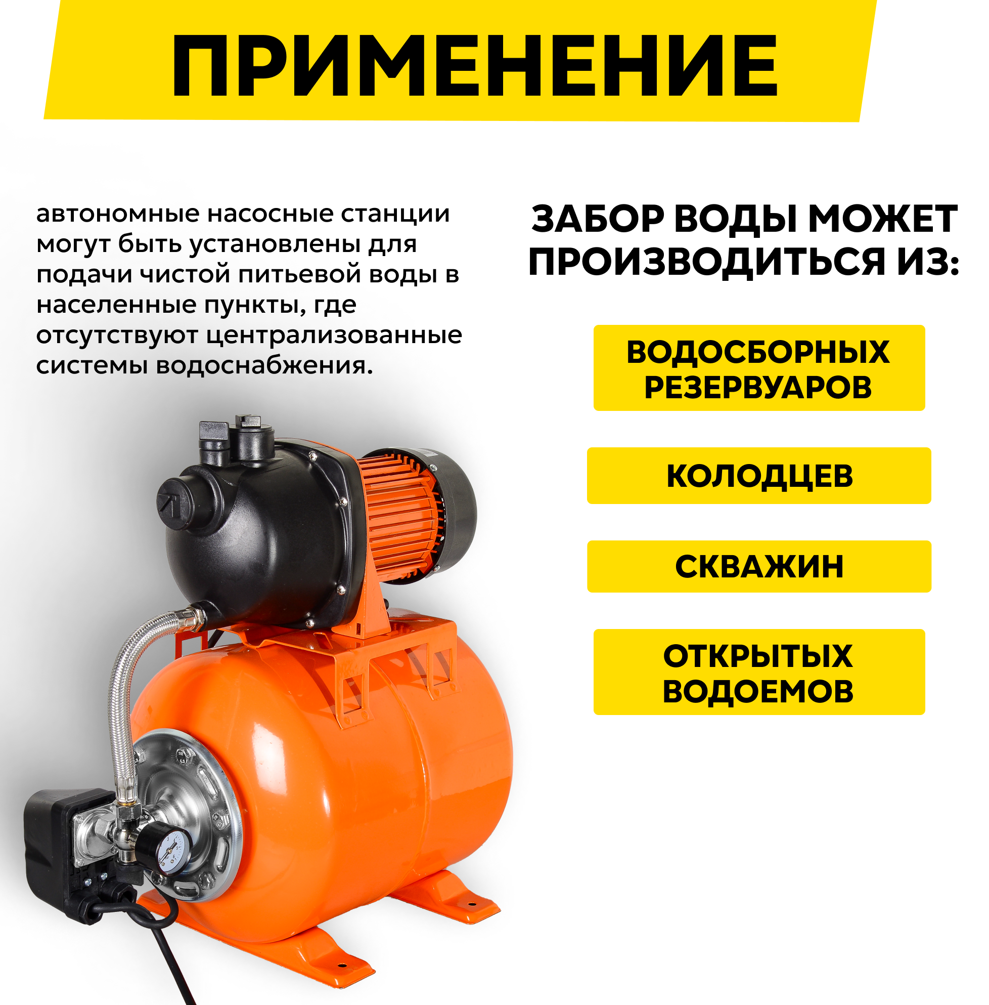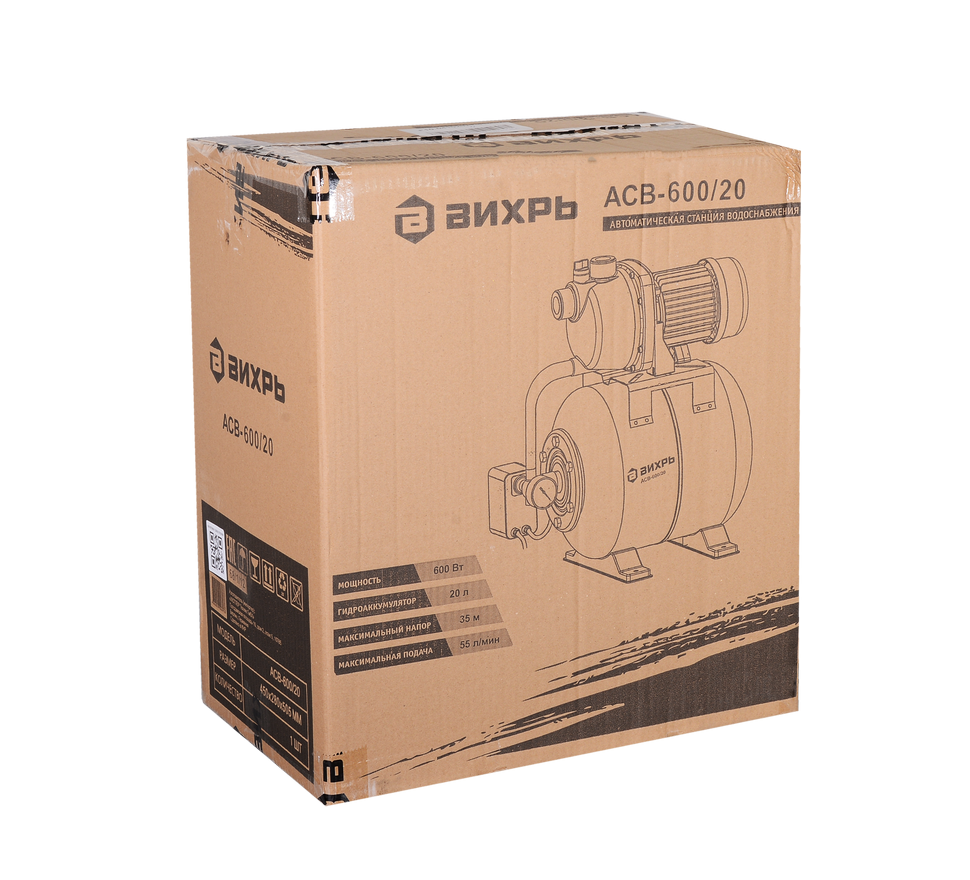 Автономная станция водоснабжения Вихрь АСВ-600/20 600 Вт, напор – 35 м, 55 л/мин, гидроаккумулятор – 20 л интересное: