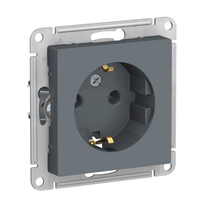 Купить Механизм розетки 1-м СП AtlasDesign 16А IP20 с заземлением, цвет грифель, SchE ATN000743