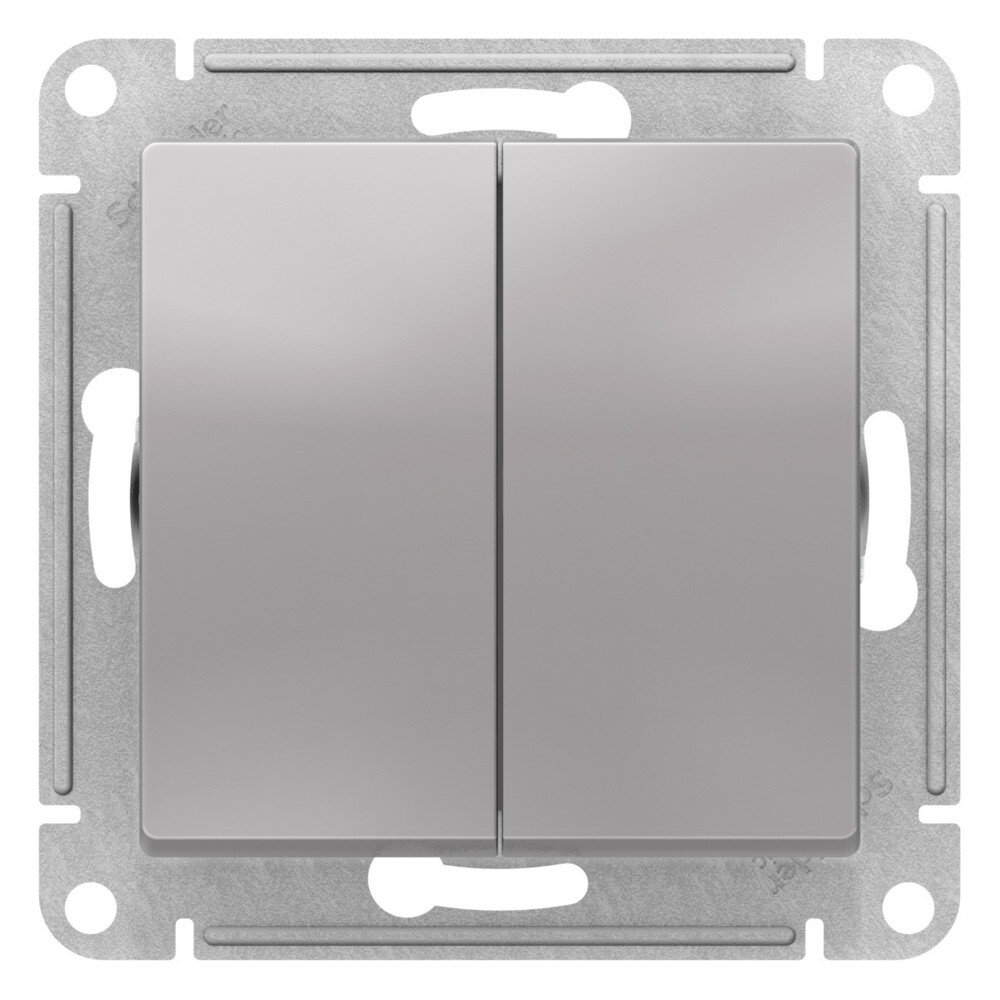 Выключатель электрический Systeme Electric Atlas Design 2-клавишный, 10А, 10 AX, Алюминий ATN000351 -10 шт.