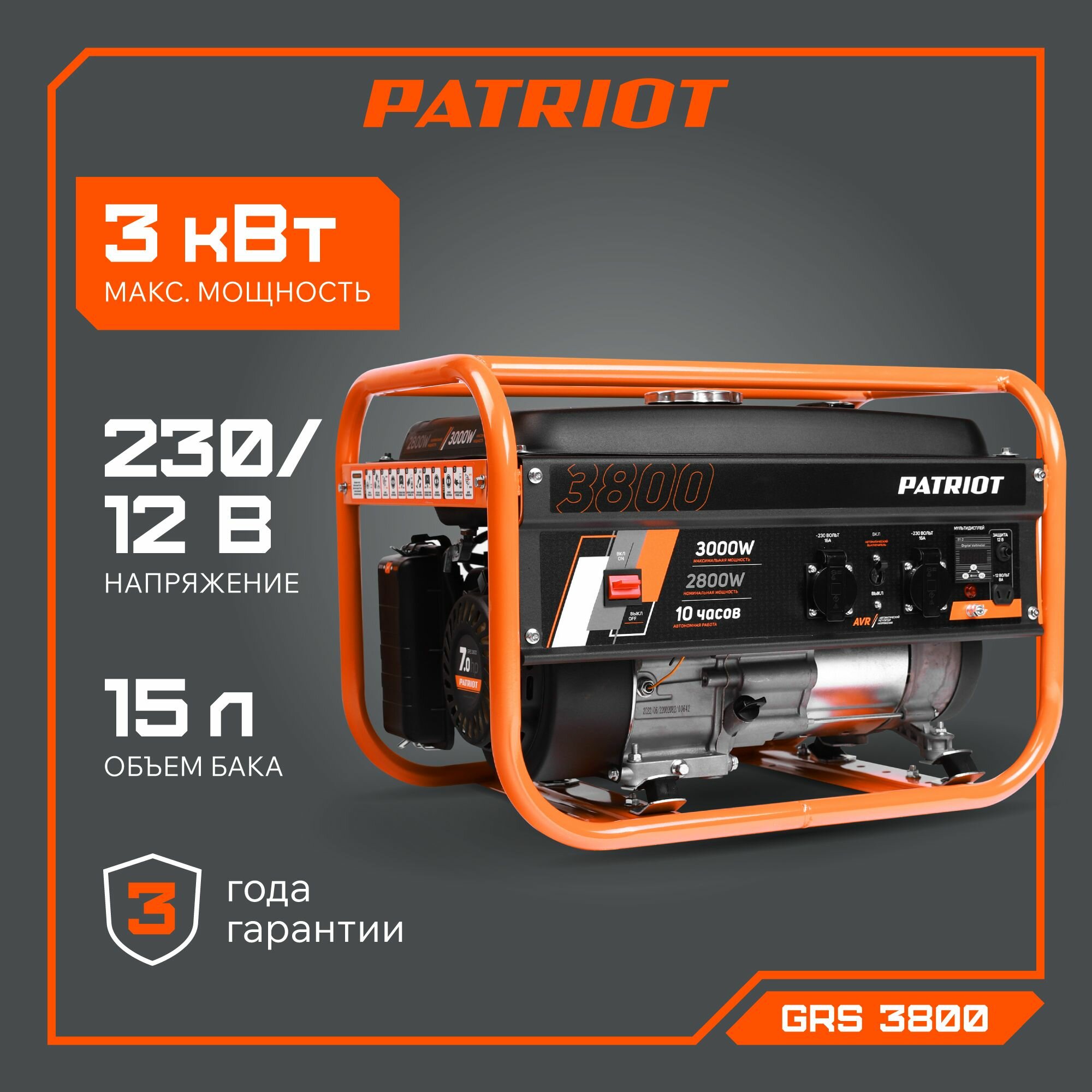 Купить Генератор бензиновый PATRIOT GRS 3800, 7лс, 3000Вт, объем 15л
