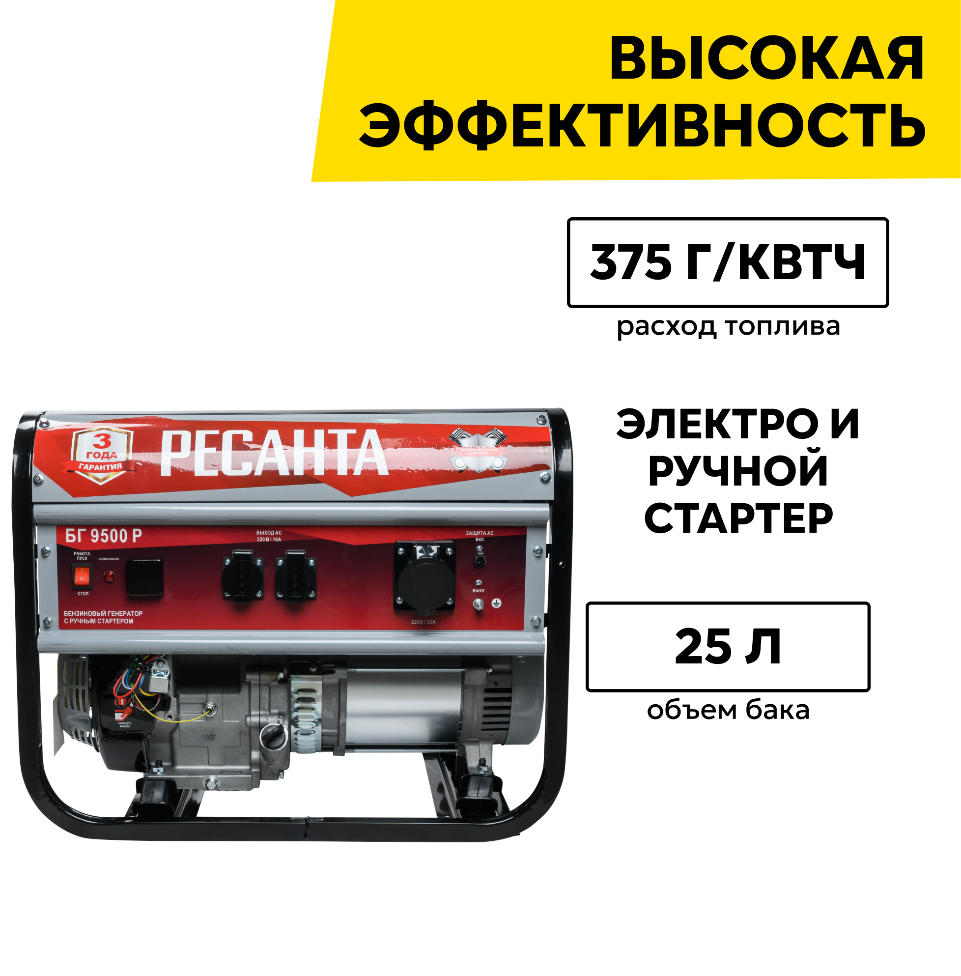 Бензиновый генератор РЕСАНТА БГ 9500 Р, (8000 Вт)