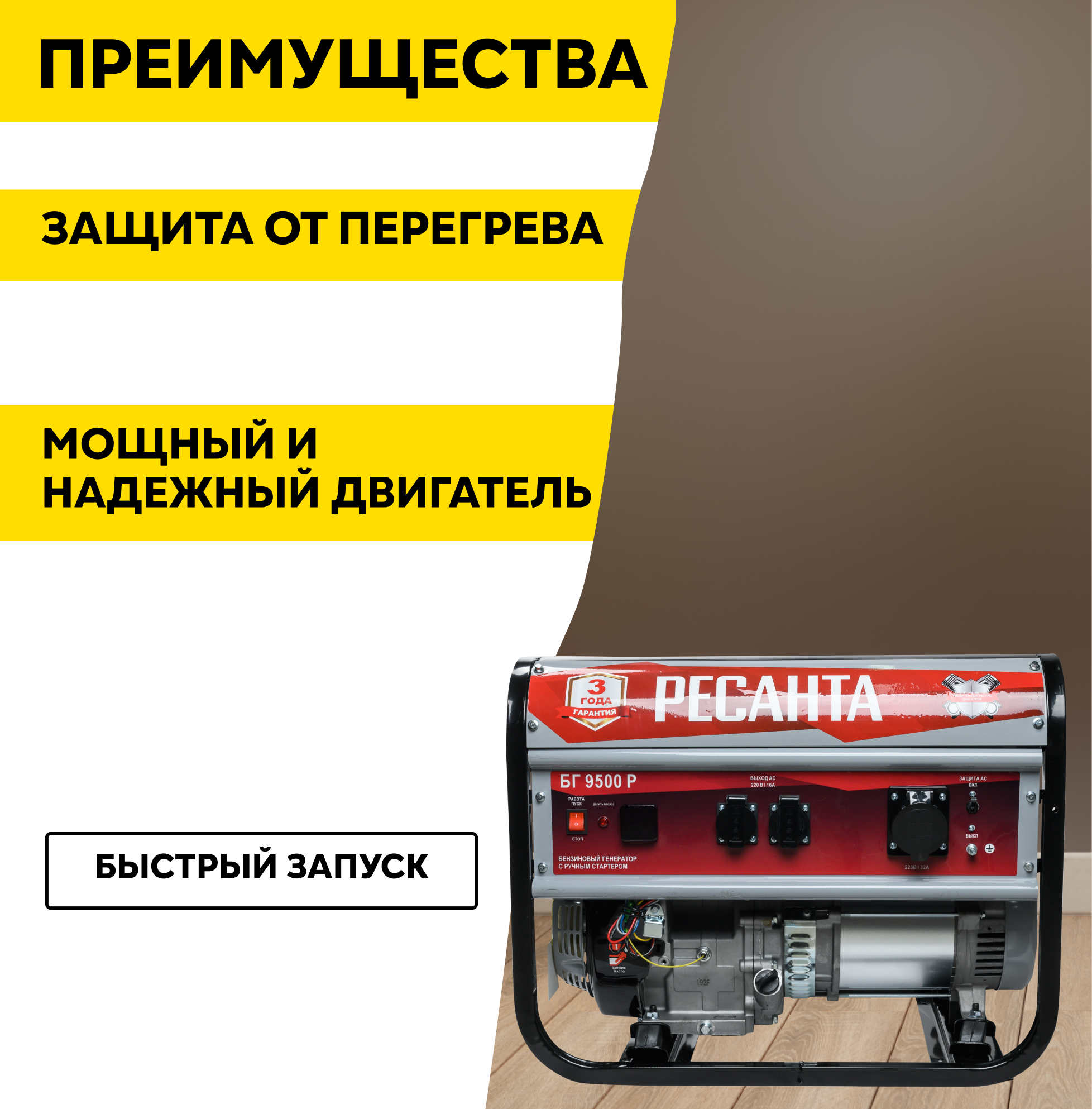 СохранитьБензиновый генератор Ресанта БГ 9500Р, 8 кВт, ручной стартер интересное: