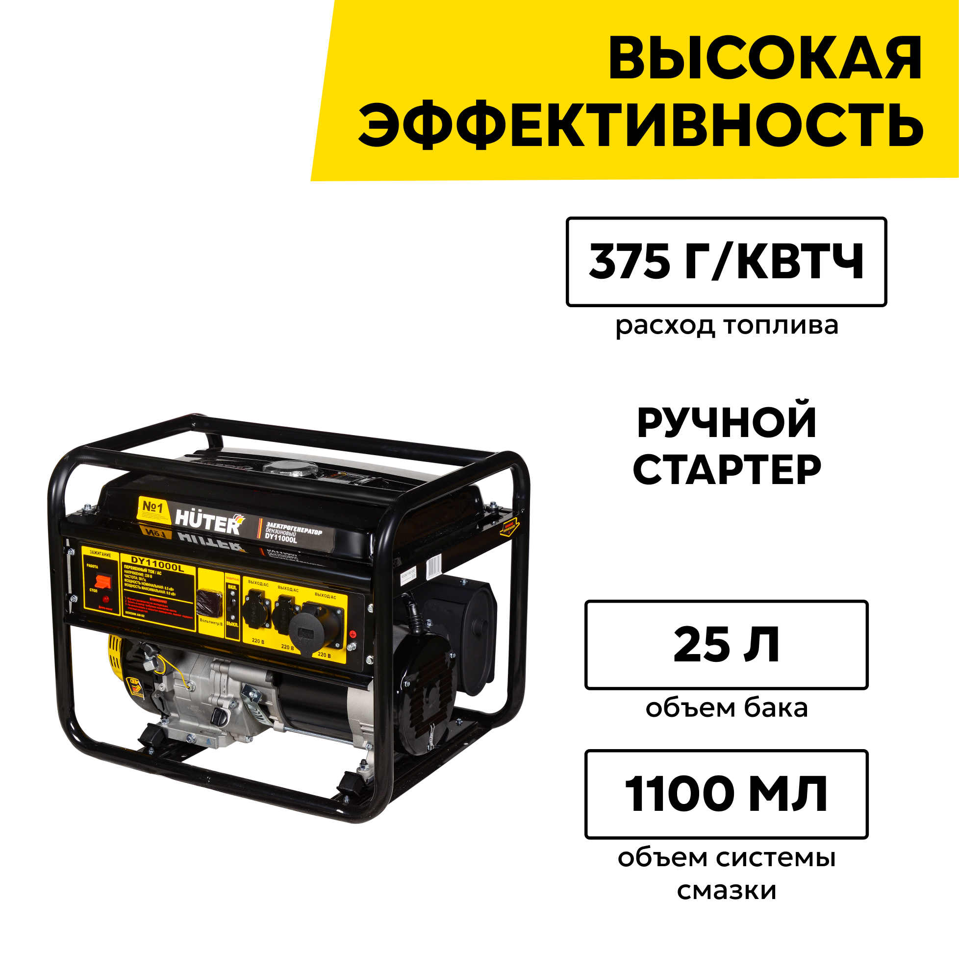СохранитьГенератор бензиновый DY11000L Huter, ручной стартер, максимальная мощность 9000 Вт интересное: