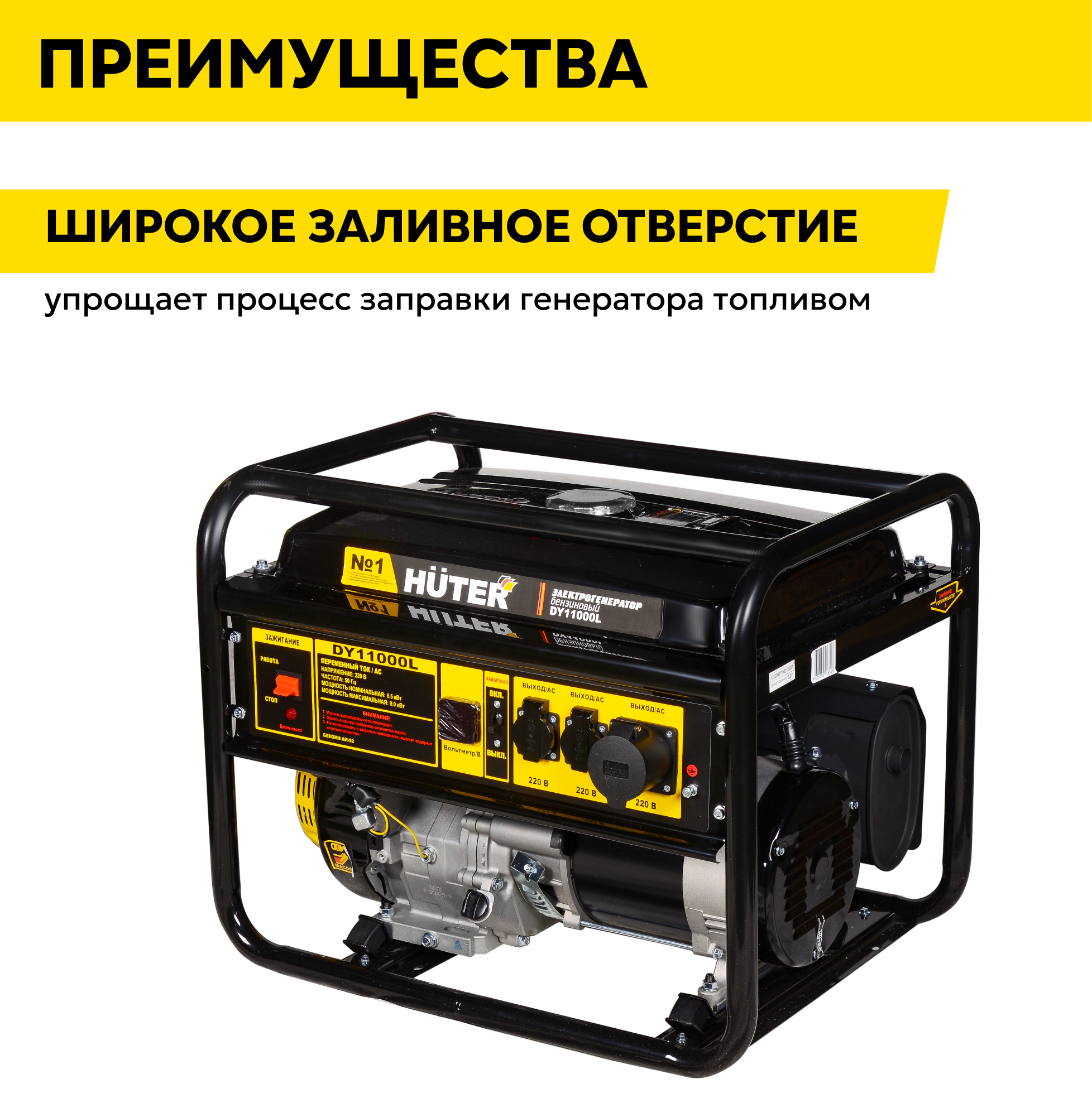 Купить Генератор бензиновый DY11000L Huter, ручной стартер, максимальная мощность 9000 Вт