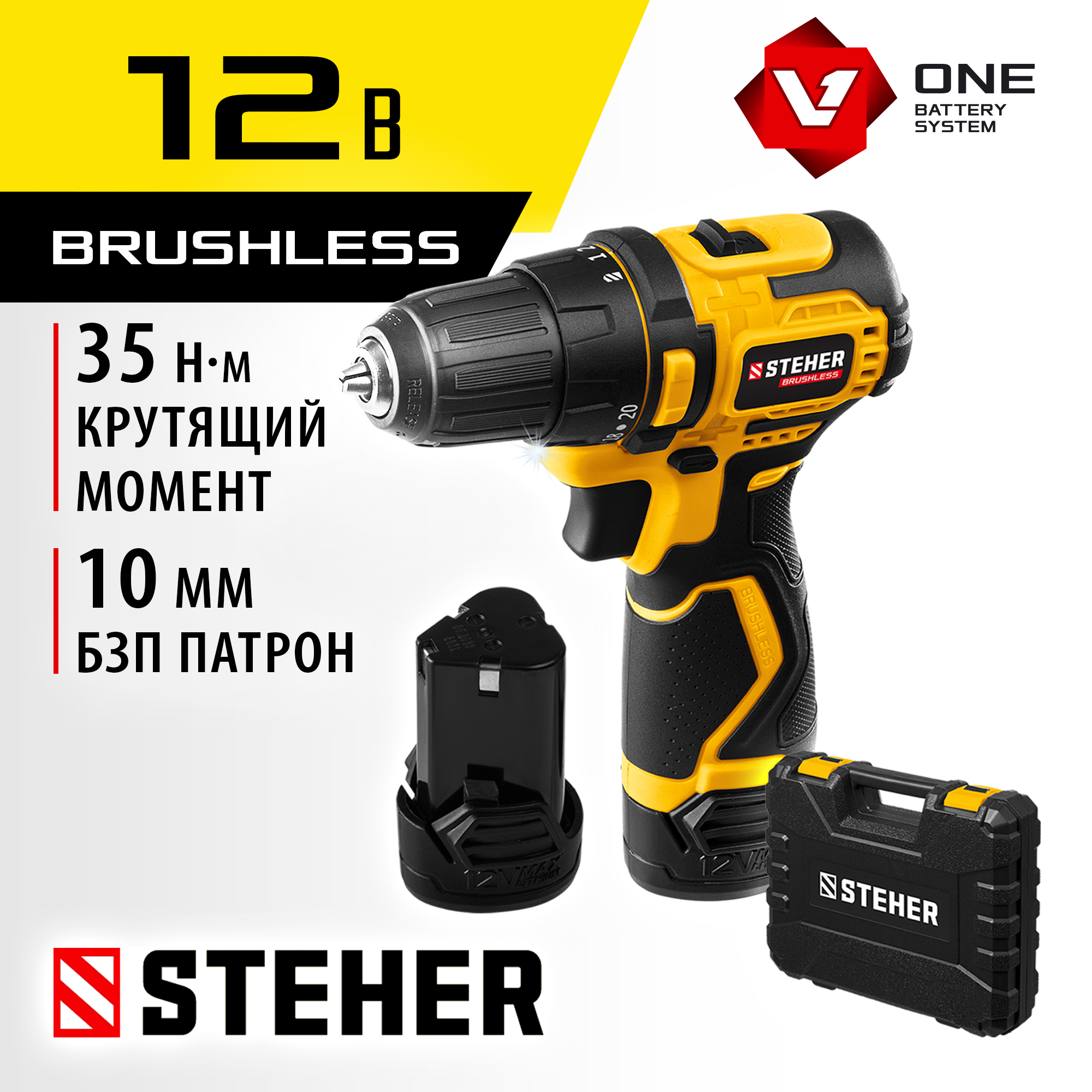 СохранитьSTEHER 12 В, 35 Н·м, 2 АКБ (2 А·ч), бесщеточная дрель-шуруповерт, кейс (CDB-120-2) интересное: