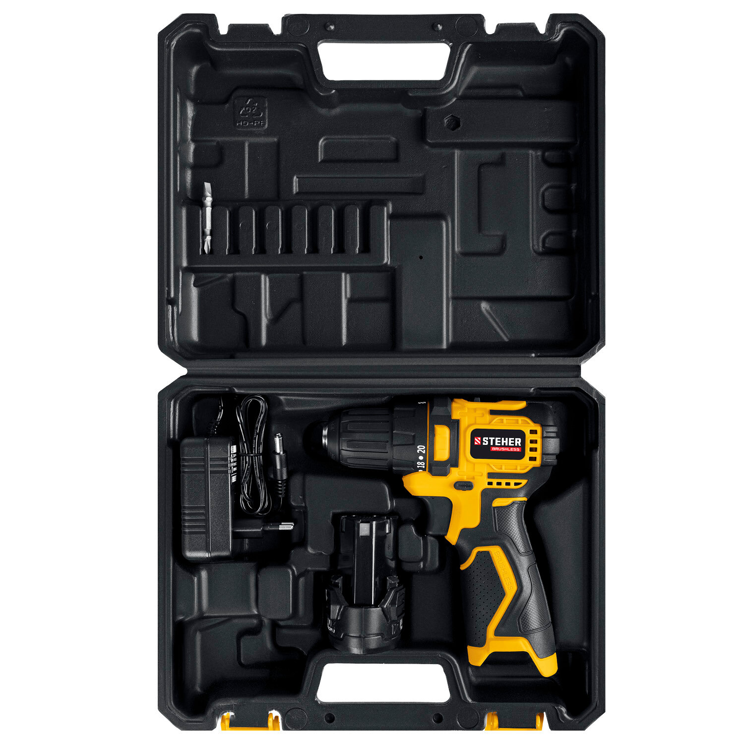 Дрель-шуруповерт Steher CDB-200-1, 20В, 1 АКБ (2 Ач), в кейсе