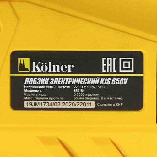 Купить Электролобзик Kolner KJS 650V, желтый, сетевой, возможность подключения пылесоса