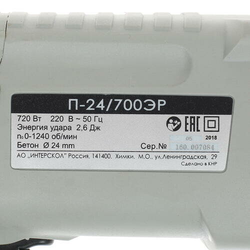 Перфоратор ИНТЕРСКОЛ П-24/700 ЭР 160.1.0.00 кейс
