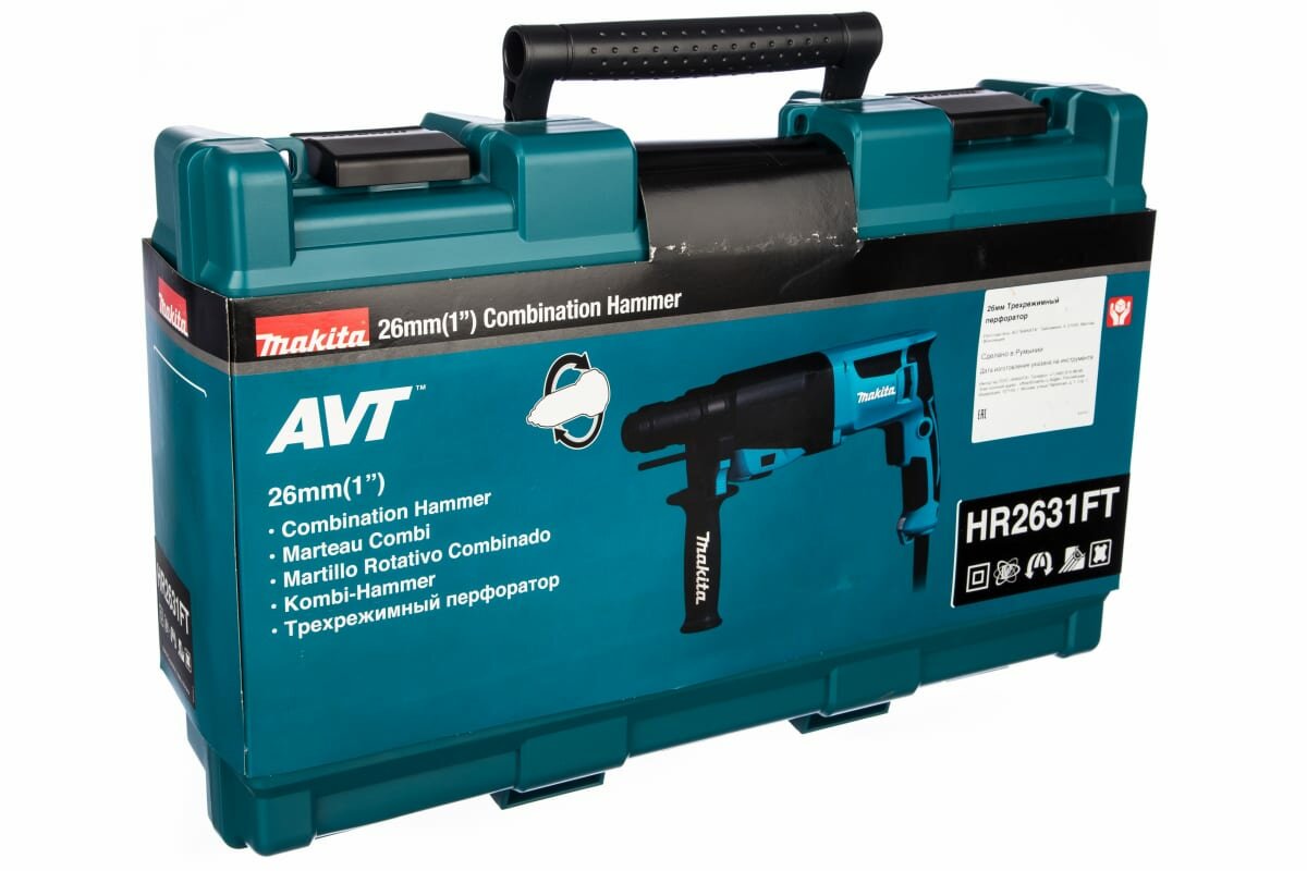 Перфоратор Makita HR2631FT Перфоратор SDS+ [HR2631FT] {800Вт,3реж,2.7Дж,0-4600у\м,3.1кг,чем,подсветка,б\съемный патрон,АВТ}