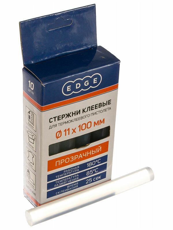 Клеевые стержни Edge By Patriot, 11 мм x 10 см, прозрачные, 10 шт