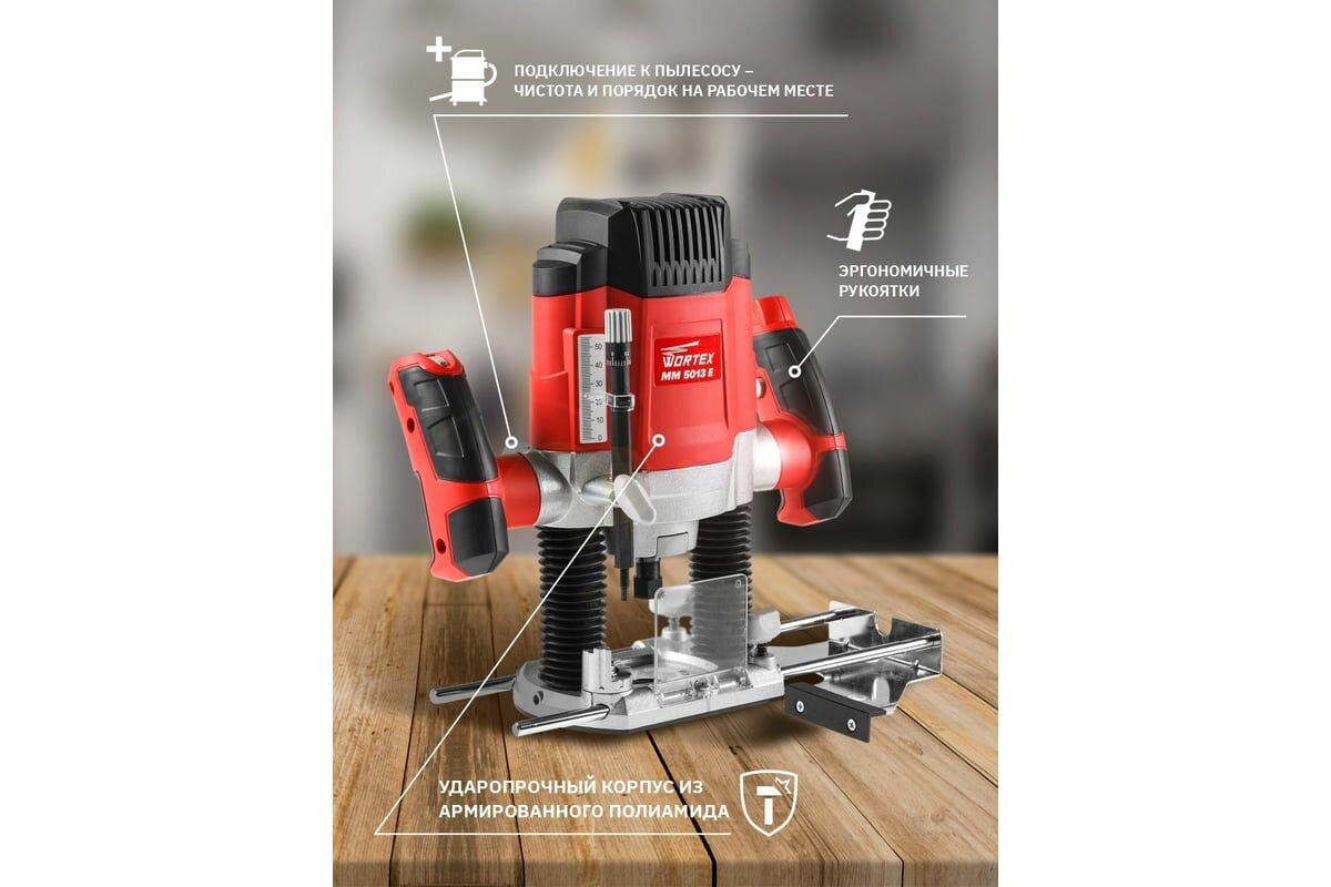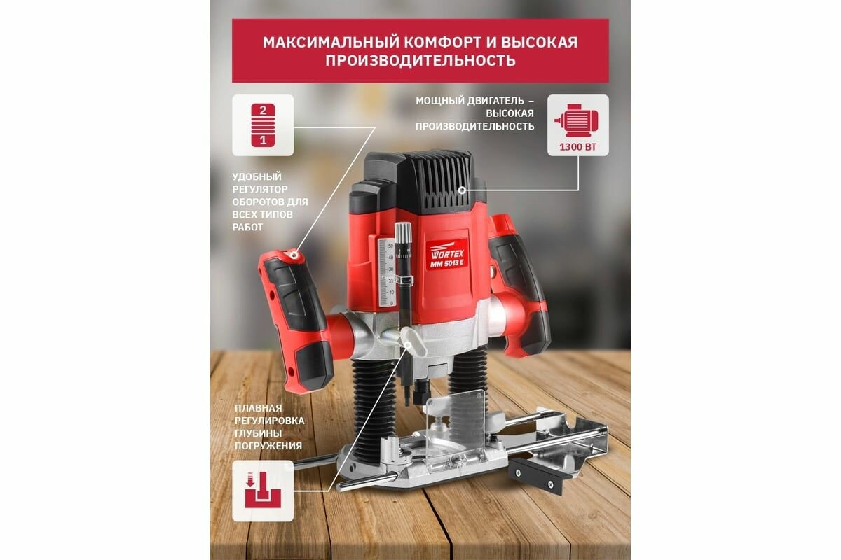 Фрезер вертикальный Wortex MM 5013 E в кор. + аксессуары, 1300 Вт, цанга 8 мм, 11000-30000 об/мин, регул. об. (MM5013E02411)