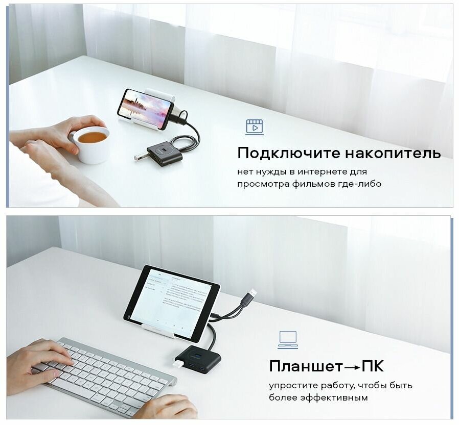 Хаб UGREEN CR113 (40850) USB 3.0 Hub with USB-C Port. Длина 1 м. Цвет: черный