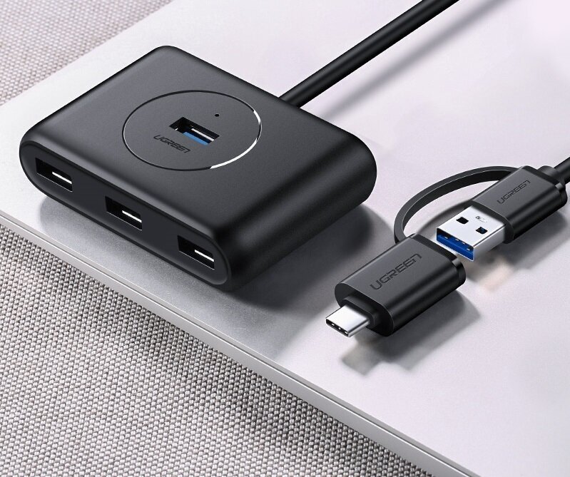 Концентратор UGREEN 40850 4*USB 3.0 with USB-C Port, 1 м, черный