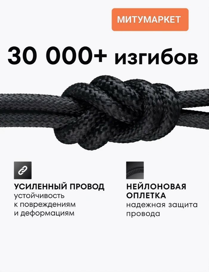 | Плюсы: | Качественная оплетка. Пропускает быструю зарядку. |