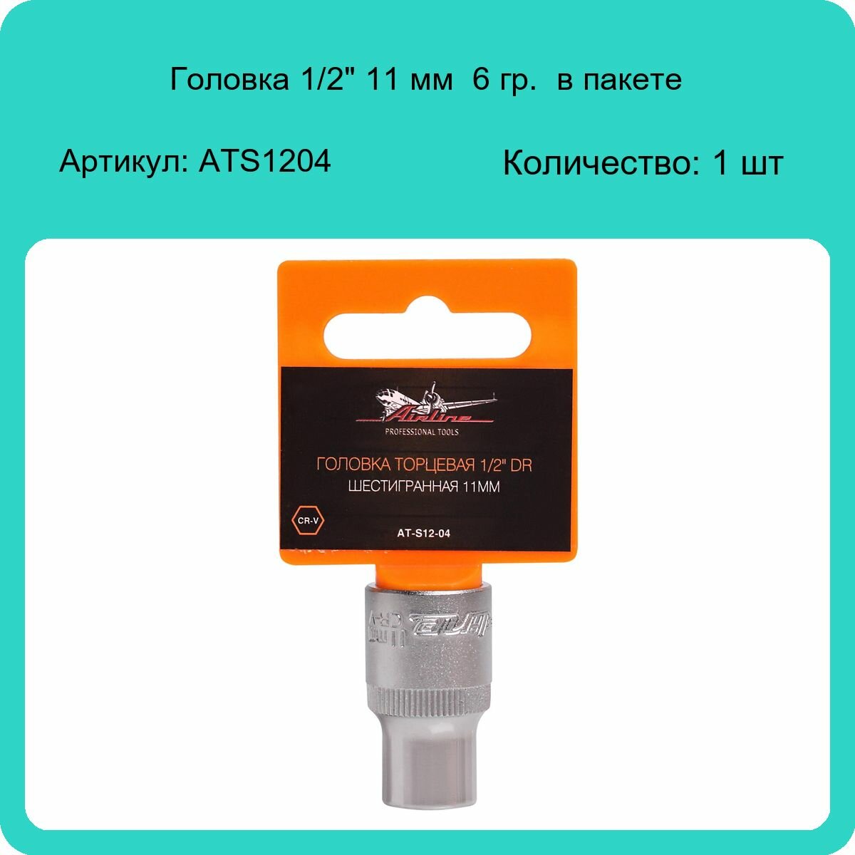 ATS1204 AIRLINE Головка торцевая 1/2 DR шестигранная 11мм в пакете (AT-S12-04)
