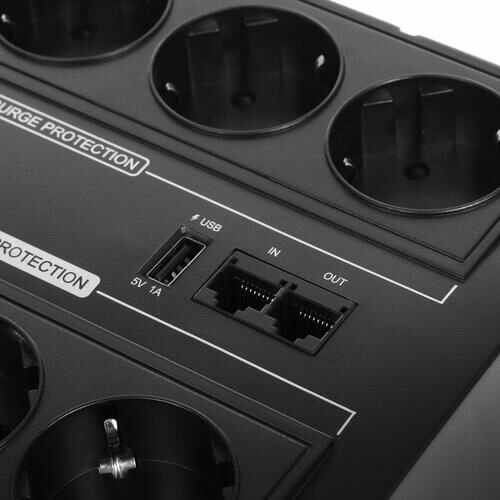 | Функции защиты | защита от высоковольтных импульсов / защита от перегрузки / защита от КЗ / защита локальной сети / защита телефонной линии |