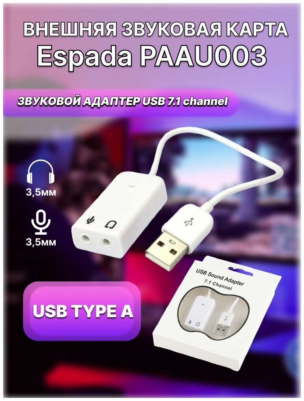 Звуковая карта Espada Внешняя звуковая карта USB Espada USB 2.0 (PAAU003) (43082), белый интересное: