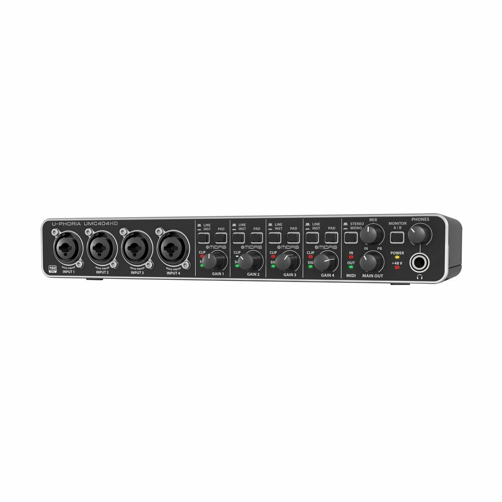 Behringer UMC404HD внешний звуковой/MIDI интерфейс, USB 2.0 , 4 вх/4 вых канала, предусилители MIDAS