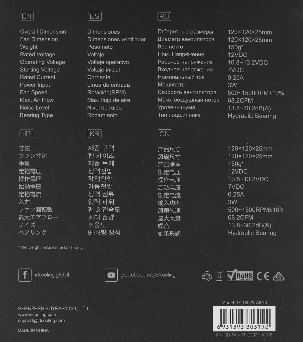 Ниже Вы можете прочитать отзывы на Вентилятор ID-COOLING TF-12025-ARGB 120 мм 4-pin PWM, 1шт (IDC_TF-12025-ARGB), ознакомится с подробными характеристиками, посмотреть интересные обзоры и фотографии на Вентилятор ID-COOLING TF-12025-ARGB 120 мм 4-pin PWM, 1шт (IDC_TF-12025-ARGB).
