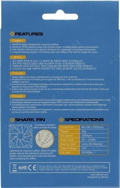 Zalman ZM-F1 PLUS (SF), 80x80x25мм, 23dBA, 3-pin, 2000об/мин, черные лопасти "акулий плавник"