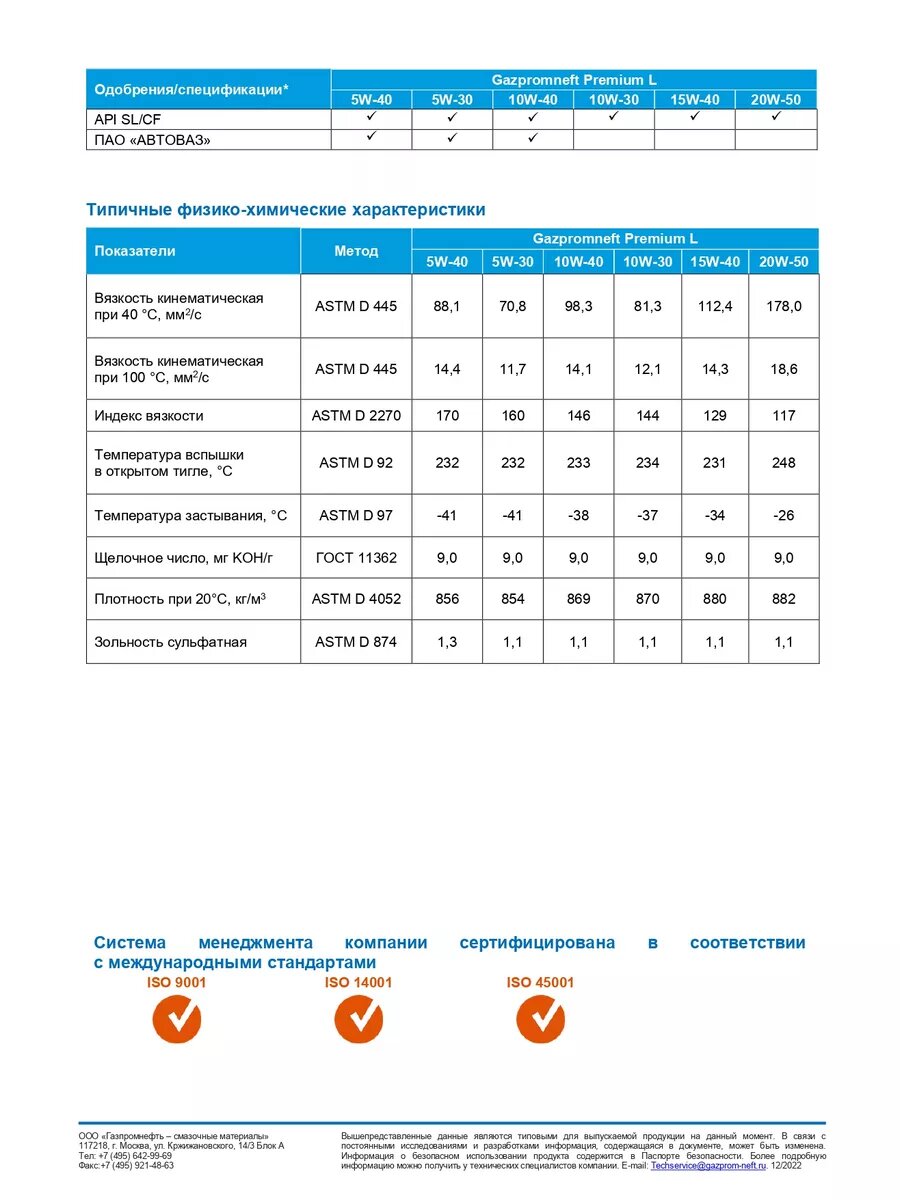 Gazpromneft Premium L 5W-40 кан.1л ( 858 г) ГПн
