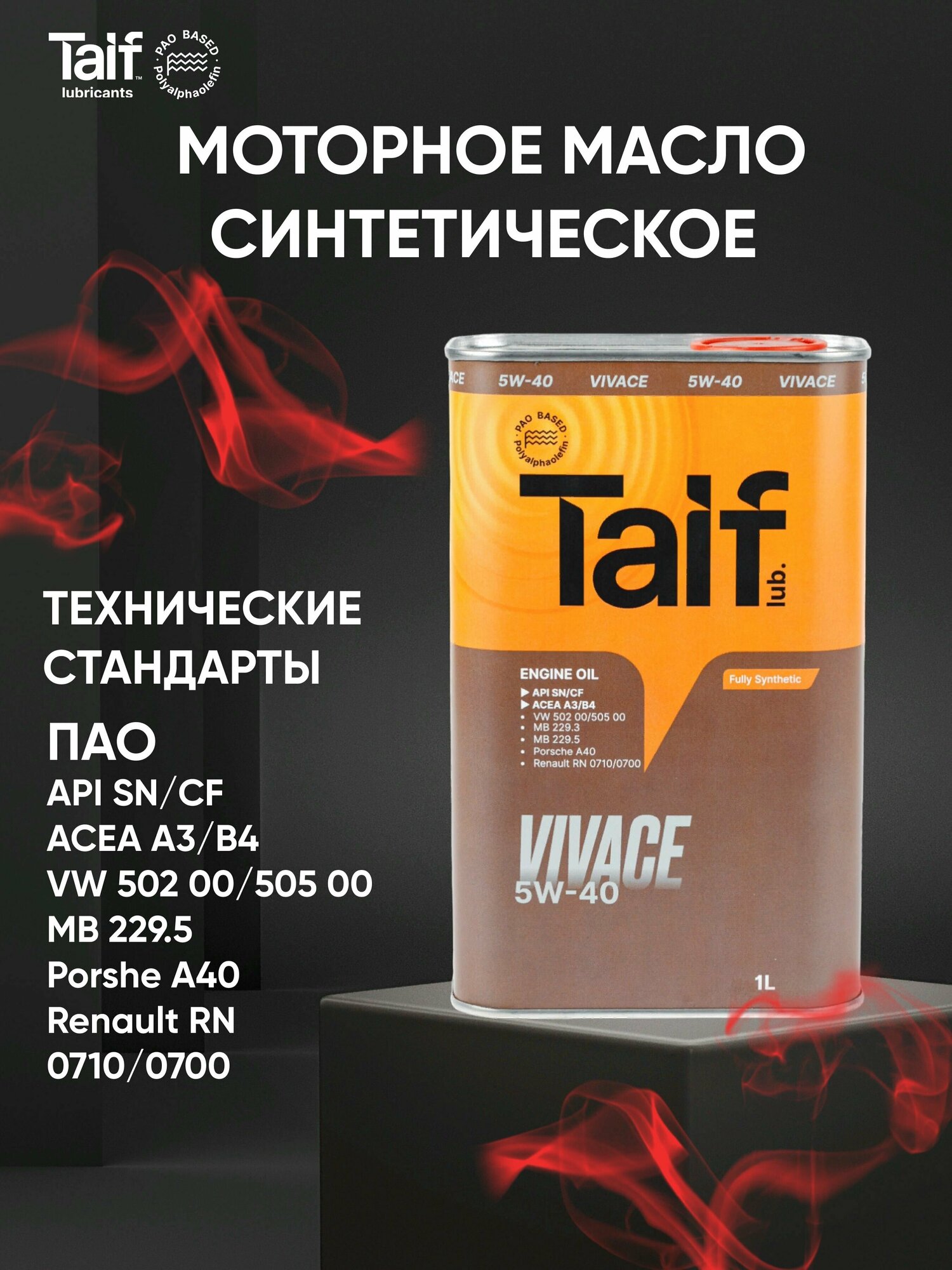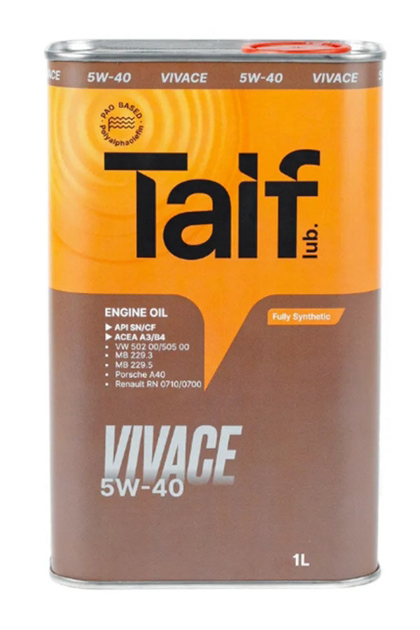 Моторное масло TAIF VIVACE 5W-40 Синтетическое, ПАО, A3/B4, SN/CF, 1 л