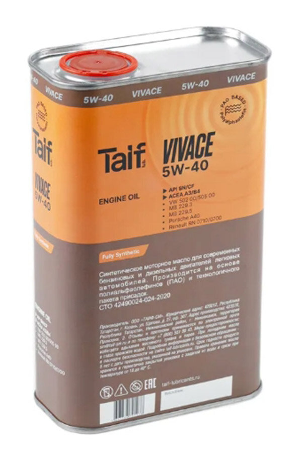 Синтетическое моторное масло TAIF VIVACE SN/CF 5W-40, 4 л, 3.8 кг, 1 шт