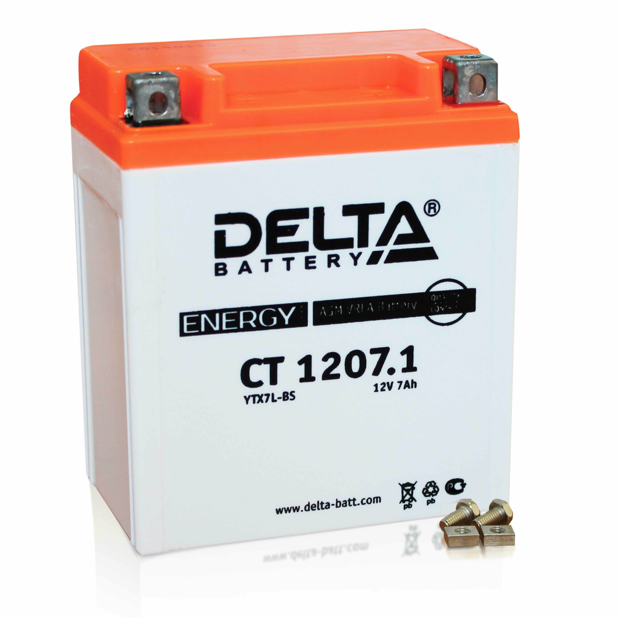 АКБ Delta CT1207.1 YTX7L-BS (12V 7Ah, Размеры: длина 114мм, ширина 70мм, высота 132мм)