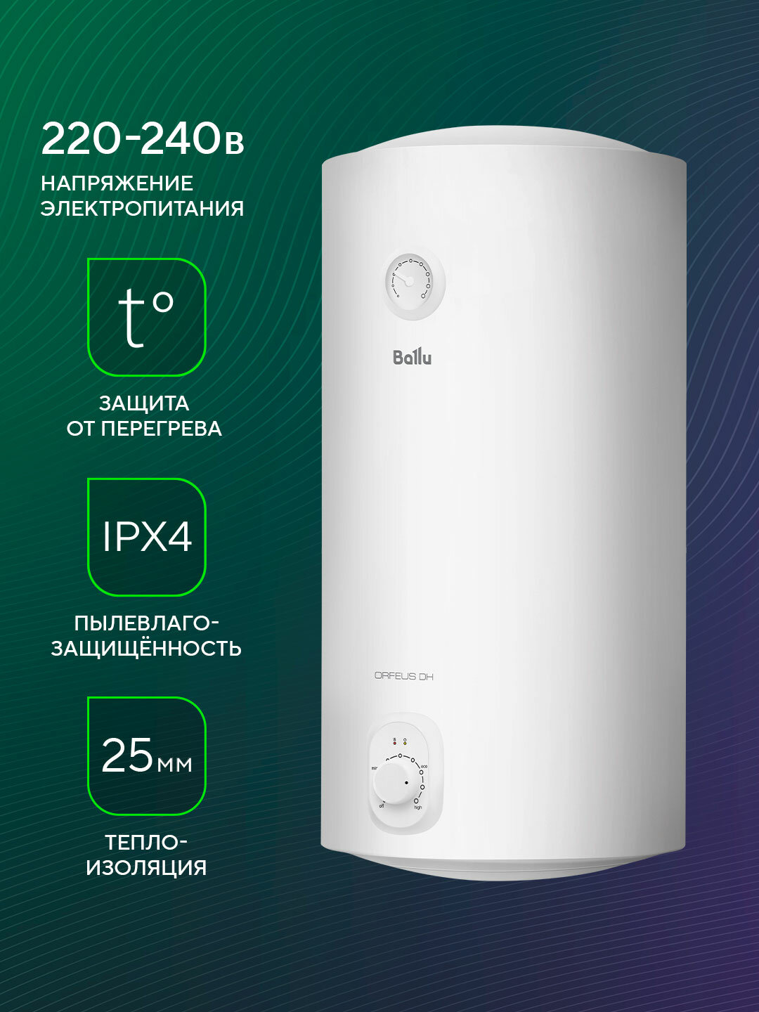 Водонагреватель накопительный Ballu BWH/S 100 литров Orfeus DH