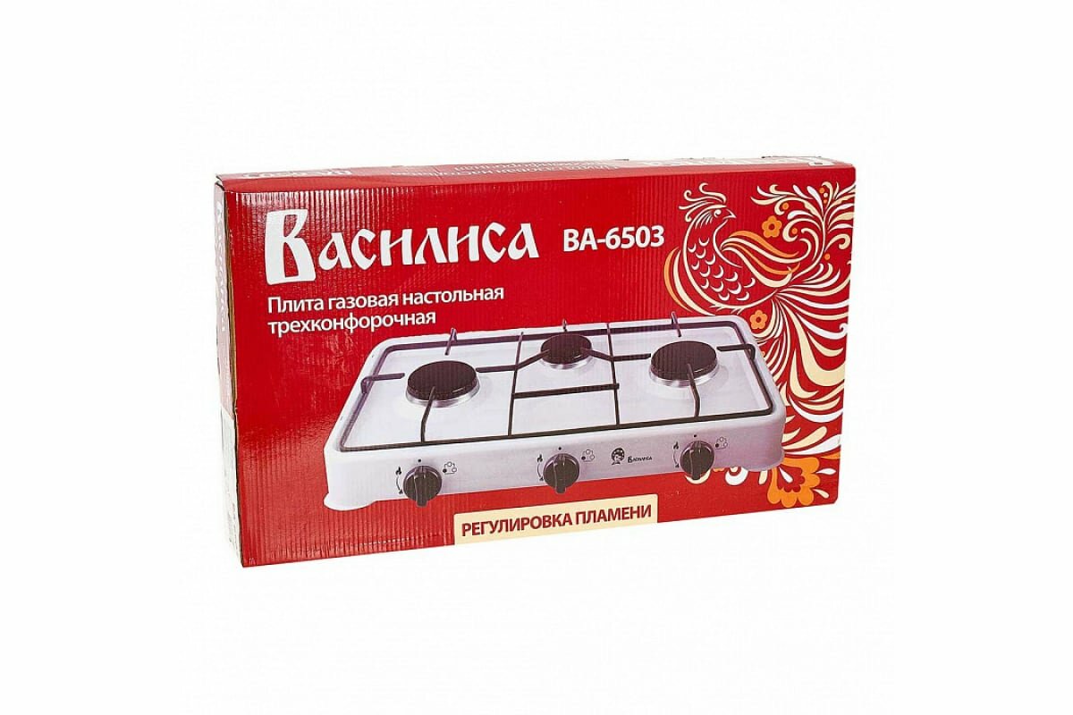 Газовая плита настольная Василиса ВА-6503, 3 конфорки, эмаль, белый