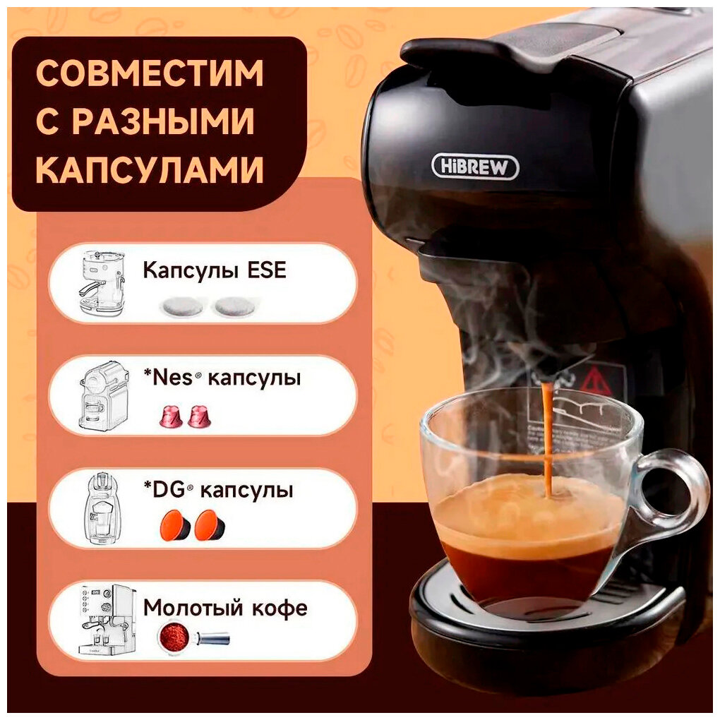 Кофемашина HIBREW капсульная, 4 в 1 Nespresso, Dolcegusto, чалды, молотый H1A, 1450 Вт, объем 0,7 л, черная