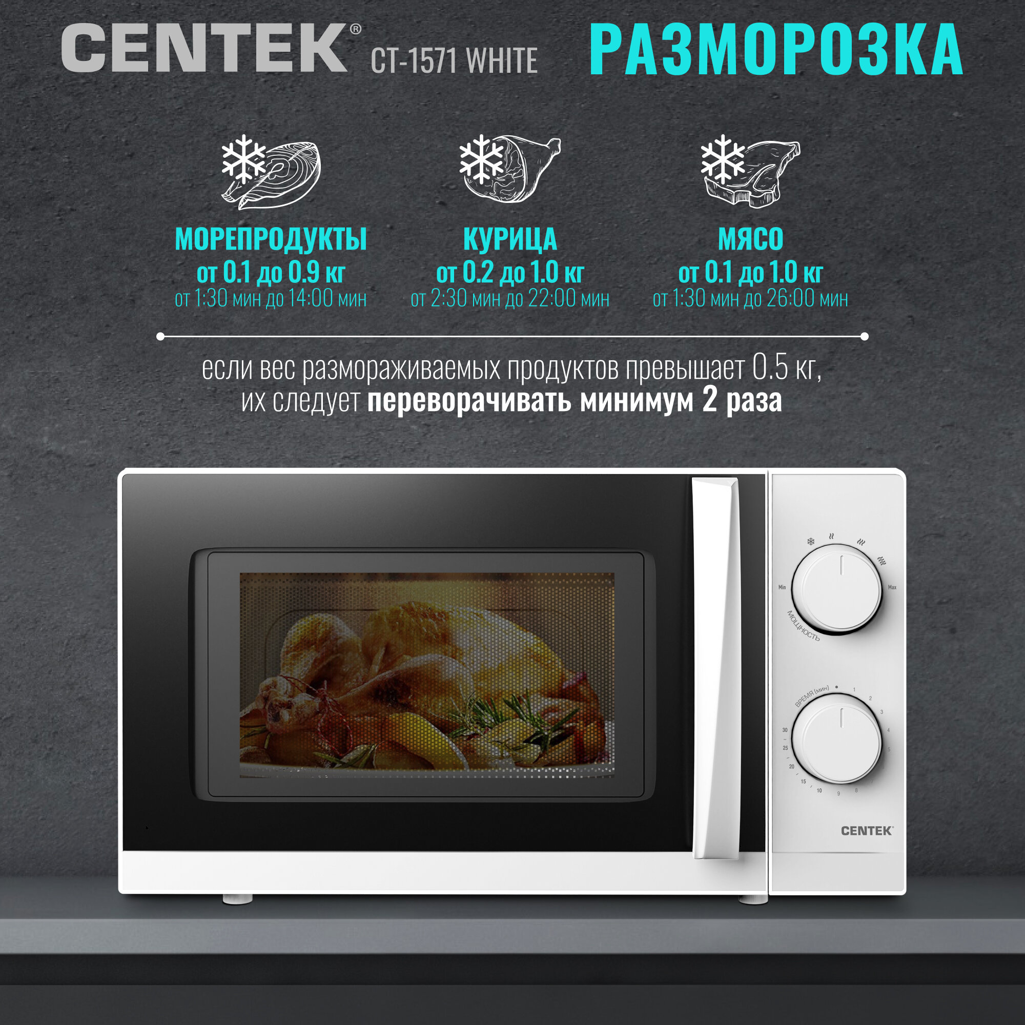Centek СВЧ 700W 20лоткрывание дверцы ручкой, премиальная упаковка, таймер 30 мин CT-1571 White