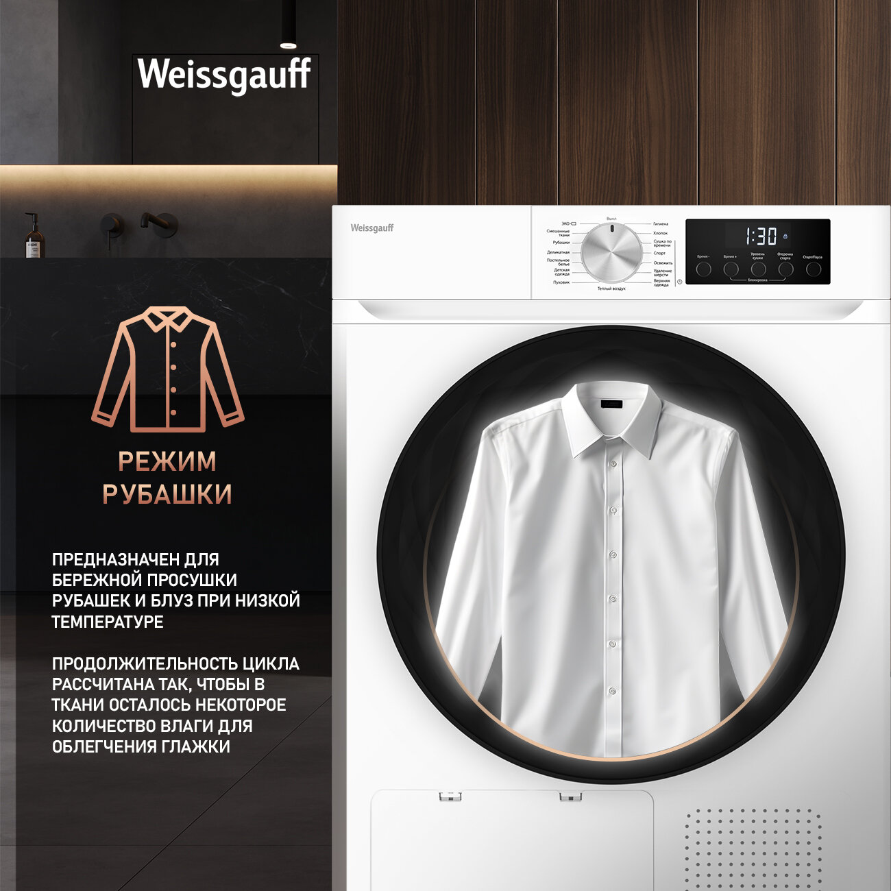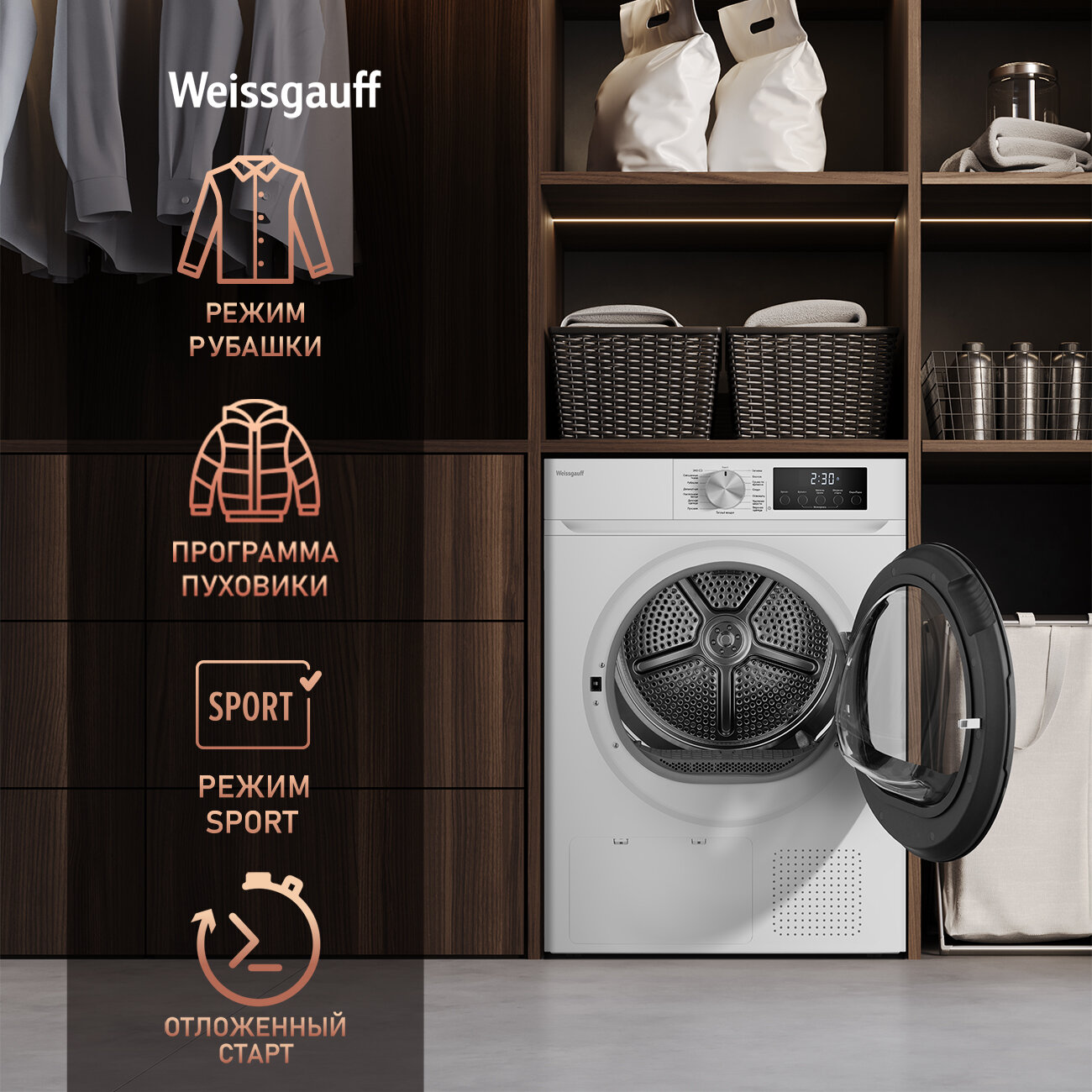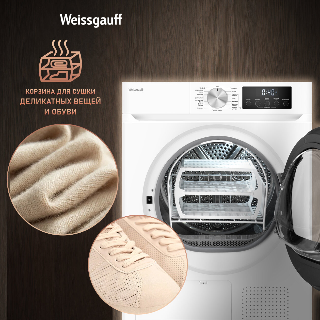 Сушильная машина Weissgauff WD 6109 Heat Pump, Тепловая помпа, 9 кг загрузка, 15 программ, Низкий уровень шума, А++ интересное: