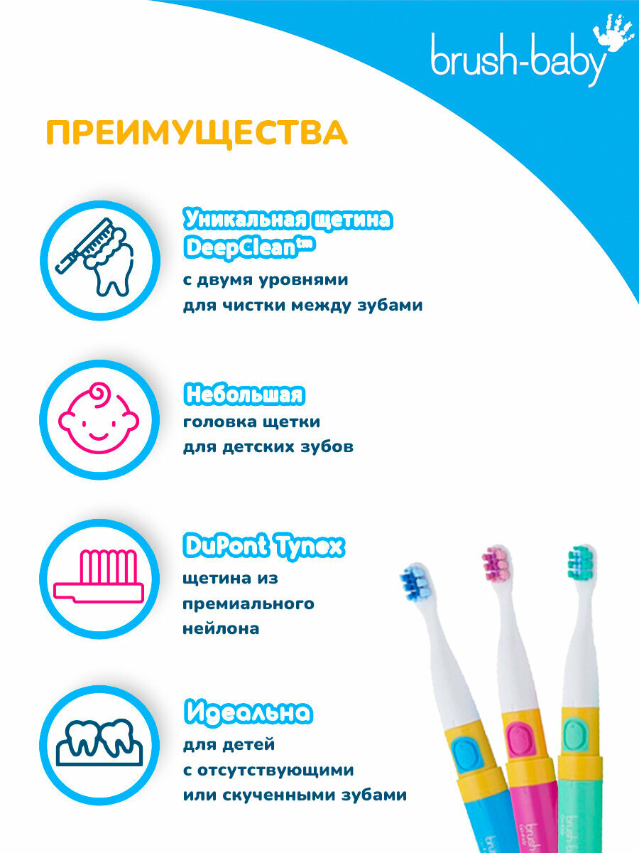 Насадки к электрической зубной щётке Brush-Baby Go-Kidz с 3 лет, 2 шт. интересное: