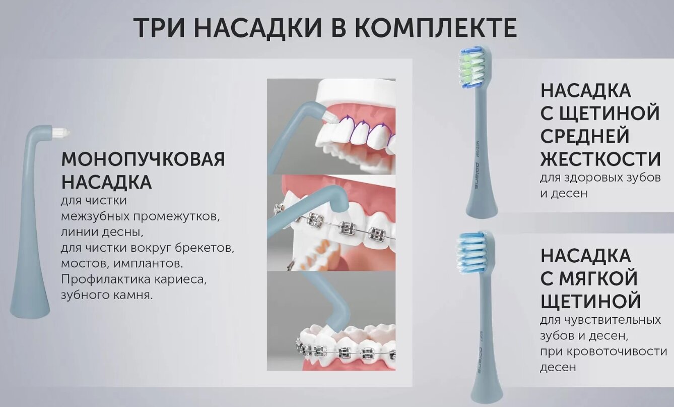| Плюсы: | МПЧ насадка + Дёсенный массаж. |