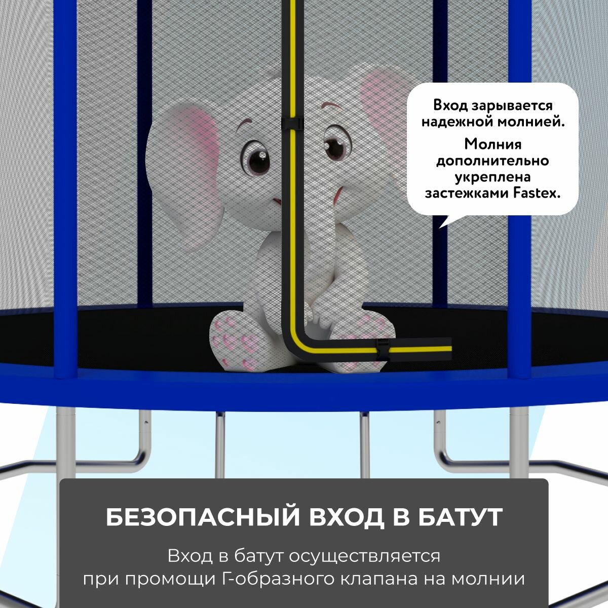 Батут SWOLLEN Comfort ZIP 12 FT (366 см) (Blue) / каркасный / с защитной сеткой / детский / для детей / уличный / для улицы / для дачи / для взрослых / большой / спортивный / для дома