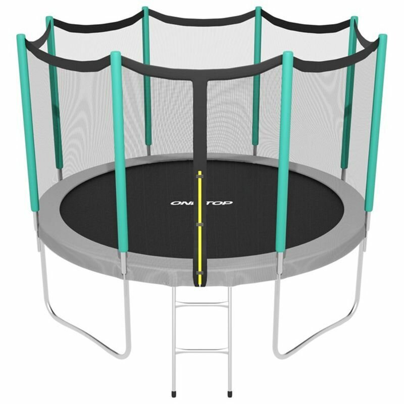 ONLITOP Батут 366 см, высота сетки h=173 см + лестница, цвет серый/салатовый