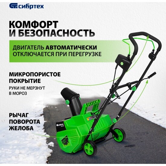 Снегоуборщик электрический Сибртех ЭСБ-2000, 2000 Вт зеленый