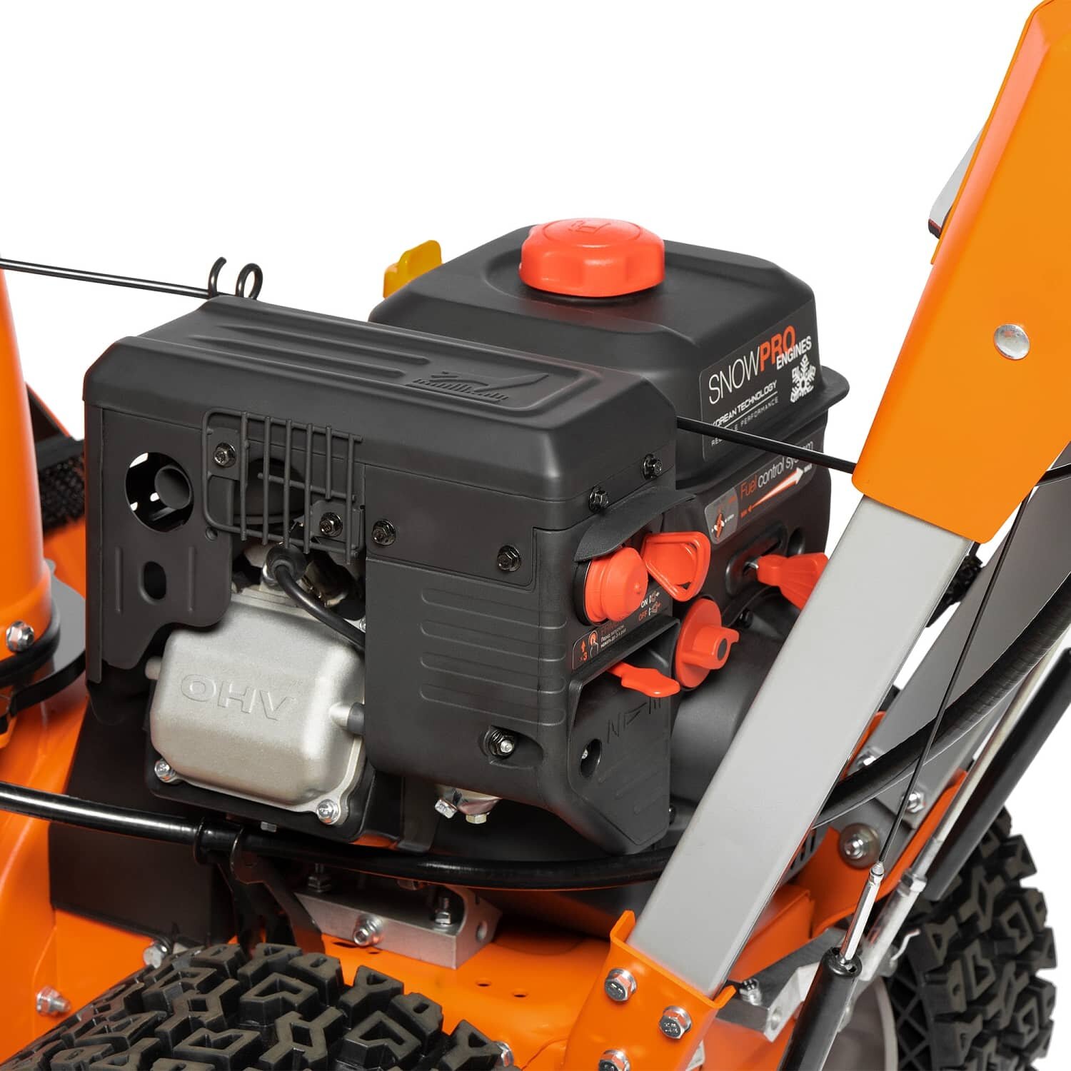 красивый дизайн, большие колеса, удобная панель управления, мощный двигатель, большие шнеки с острыми зубьями. |