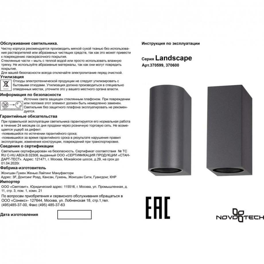 Светильник Фасадный NOVOTECH Landscape 370600, 370600, темно-серый