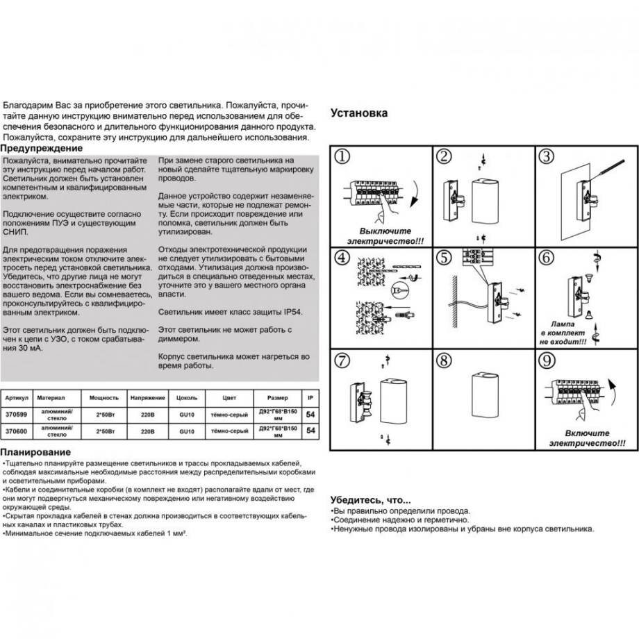 | Подробная комплектация | Уличное освещение Novotech 370600 |