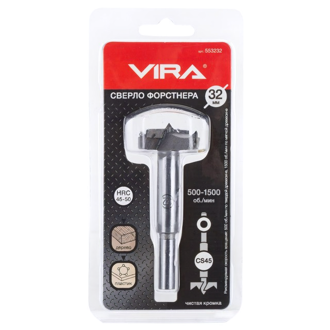 СохранитьСверло Форстнера VIRA 32мм из HSS Co 5 по пластику и дереву, 1 шт интересное: