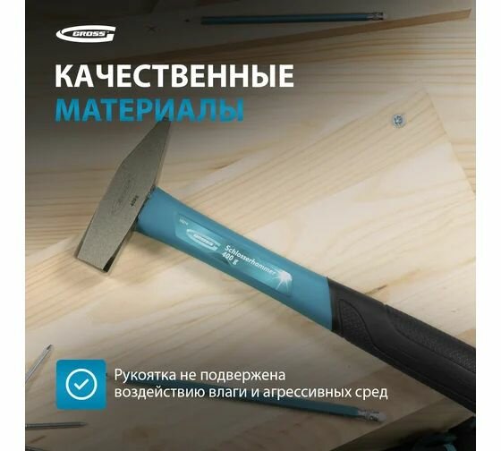 GROSS Молоток слесарный, 300 г, квадратный боек, фибергласовая обрезиненная рукоятка Gross, ( 10273 )