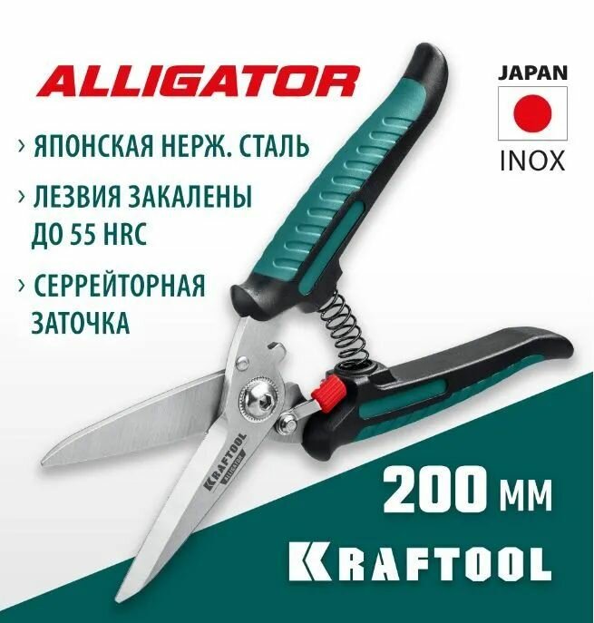 Купить KRAFTOOL Alligator многофункциональные прямые технические ножницы 200 мм. (23201)