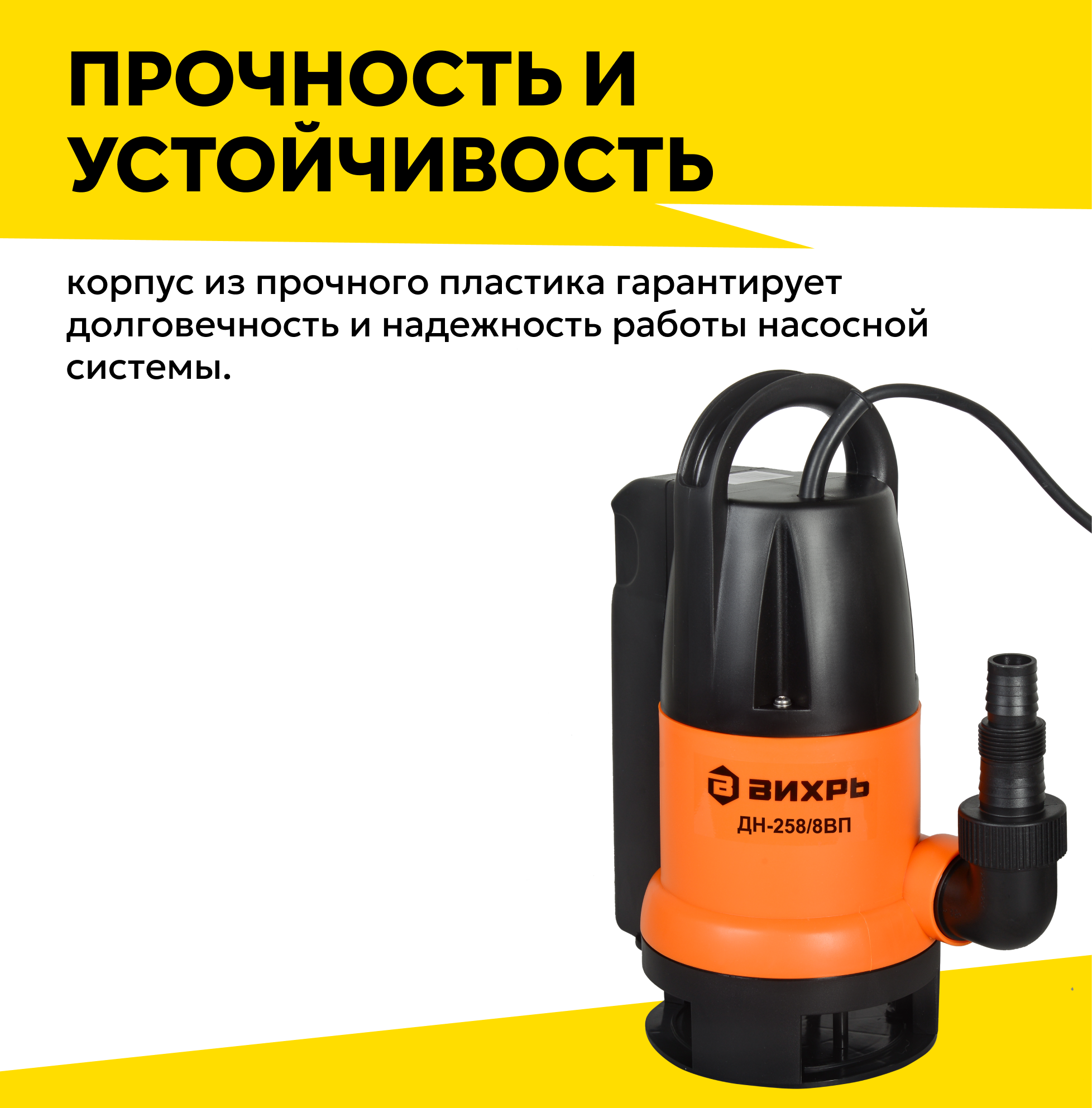 Купить Дренажный насос Вихрь ДН-258/8 ВП, 900 Вт, макс. напор – 8 м, 258 л/мин, для грязной воды