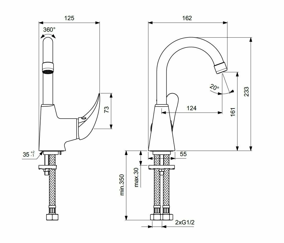| Дополнительная информация | угол поворота излива 360°; керамический картридж 35 мм; монтажный комплект; возможность установки нажимного донного клапана |