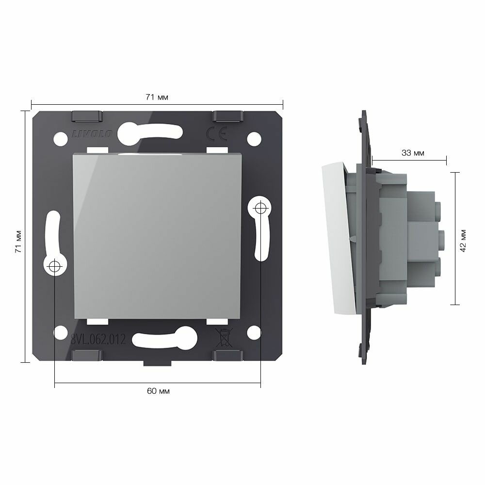 СохранитьМеханизм выключателя механического одноклавишного, цвет серый LIVOLO ORIGINAL интересное: