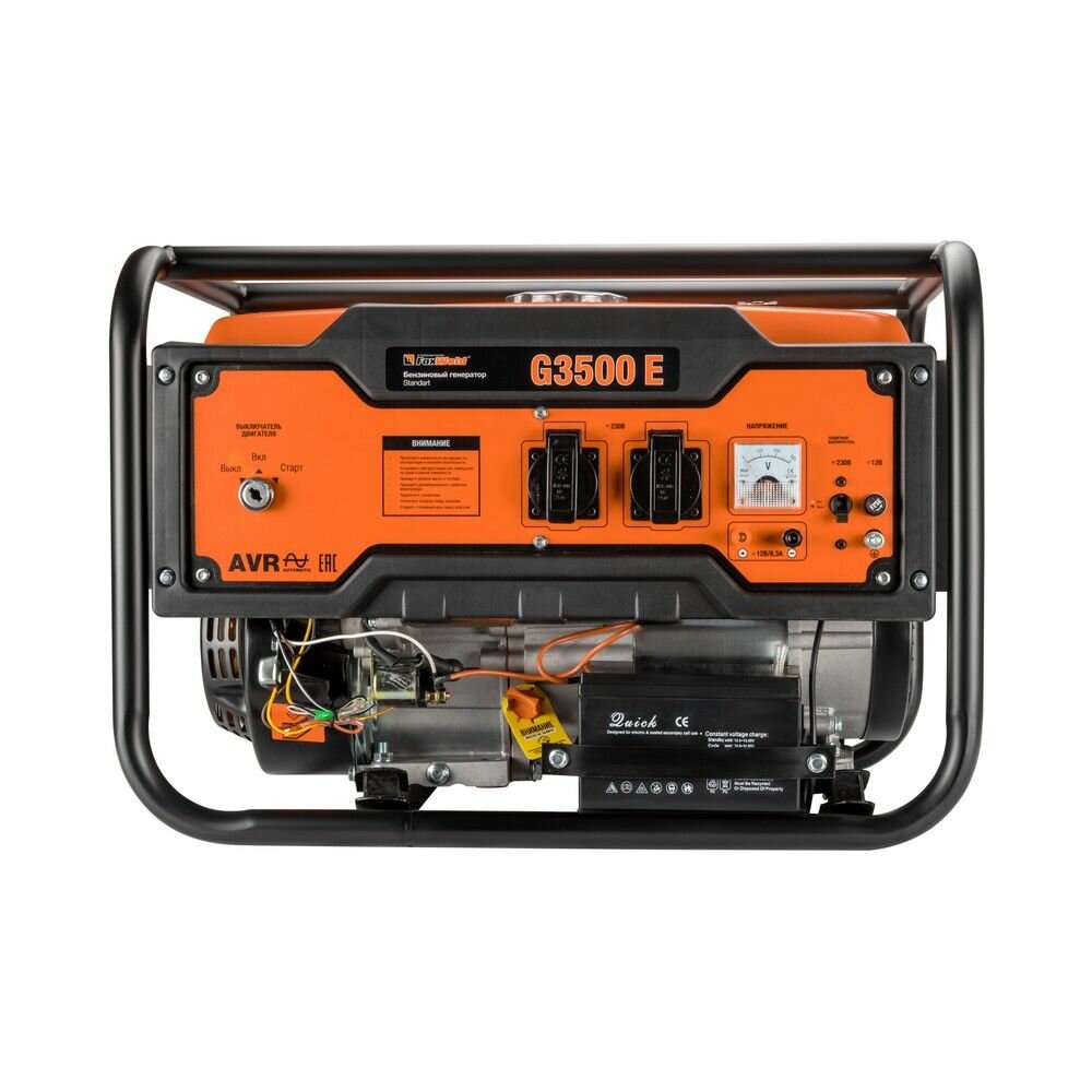 Генератор бензиновый FoxWeld Standart G3500 E 3 кВт, электростартер, 4-тактный, AVR, 230 В, розетки 16 А, выход 12 В интересное:
