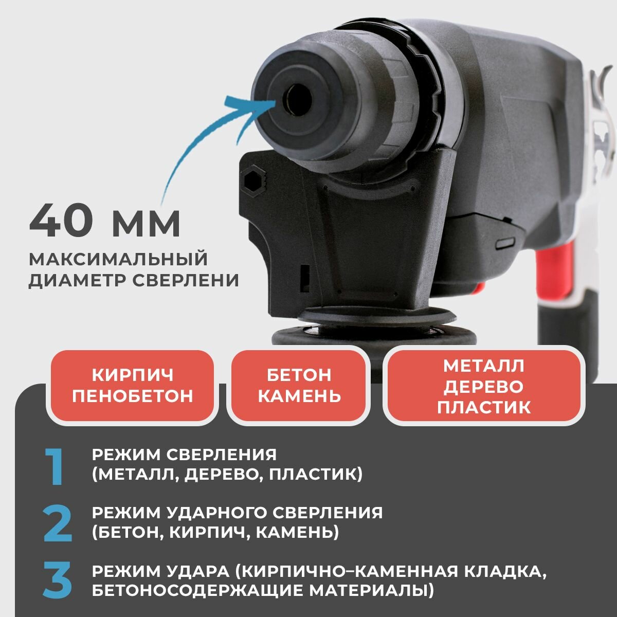 Купить Перфоратор электрический EWA БПЕ 1200, 1200 Вт, 3.2 Дж, SDS-Plus , кейс